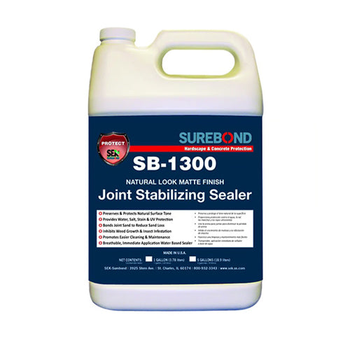 SB-7700 Joint Stabilizing Anti-Fungal Sealer is a water-based, single-component, self-crosslinking acrylic co-polymer sealer and joint sand stabilizer. It offers outstanding durability and is specially formulated with an anti-fungal agent designed to help inhibit the growth of mold, moss, and algae on the sealer film when applied to horizontal or vertical surfaces. Ideal for shaded areas, pool decks, outdoor showers, and other areas where mildew, fungus, and algae are a concern. SEK SUREBOND
